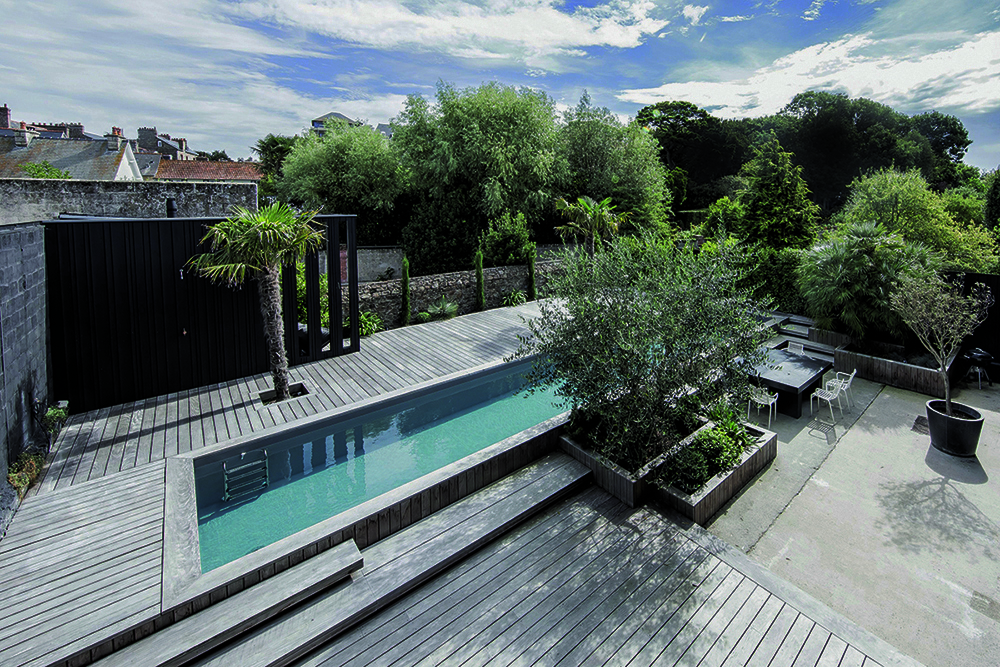 Allant d’un bout à l’autre du terrain, cette piscine en couloir de nage joue la carte de la pureté des lignes et des matériaux. 1 En lévitation Les marches en ipé qui mènent au solarium et à la piscine semblent flotter grâce à l’absence de contre-marche apparente. Cette subtilité de pose comme les dimensions variables […]