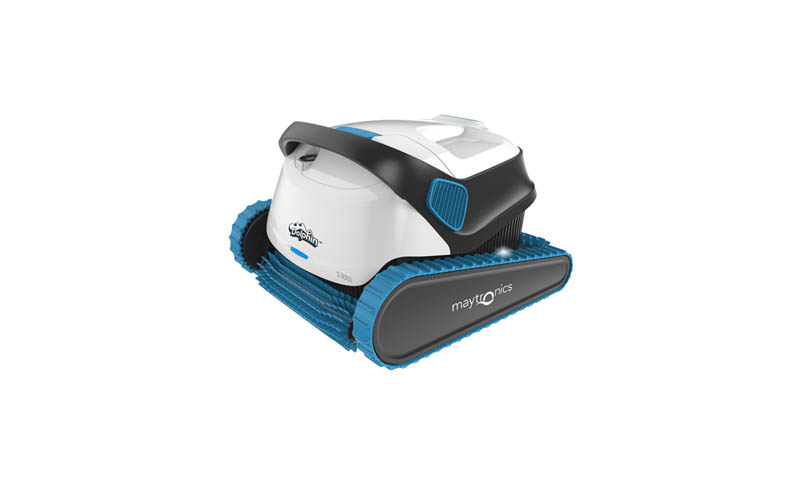 Dolphin Maytronics S300i Le Dolphin S300i est adapté aux piscines jusqu’à 12 m et effectue un nettoyage complet du bassin, parois et ligne d’eau en 2 h 30. Il est pilotable et programmable depuis l’application smartphone MyDolphin.   www.maytronics.fr