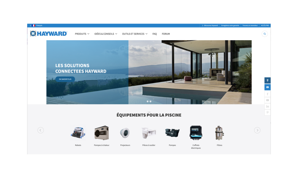 Le nouveau site web de Hayward se veut plus moderne et tendance grâce à un graphisme renforçant un positionnement axé sur l’innovation. Cette plateforme comporte de nombreuses nouveautés : – grâce au moteur de recherche, l’utilisateur peut effectuer des recherches spécifiques en saisissant soit le nom du produit, soit sa référence ; – afin d’aiguiller l’utilisateur, Hayward […]