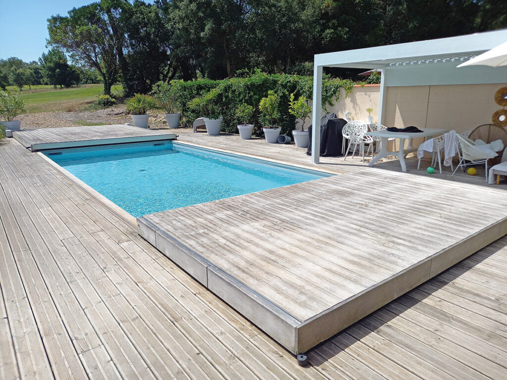 Au-delà de son aspect esthétique, la terrasse mobile permet de récupérer de l’espace dans le jardin, de sécuriser le bassin et de profiter d’une surface praticable pour diverses activités. Conçue pour être durable et résistante, elle offre un confort d’utilisation qui simplifie la vie des propriétaires. Très fiable, elle protège la piscine face aux intempéries et aux aléas climatiques : vents violents, grêle ou canicule.