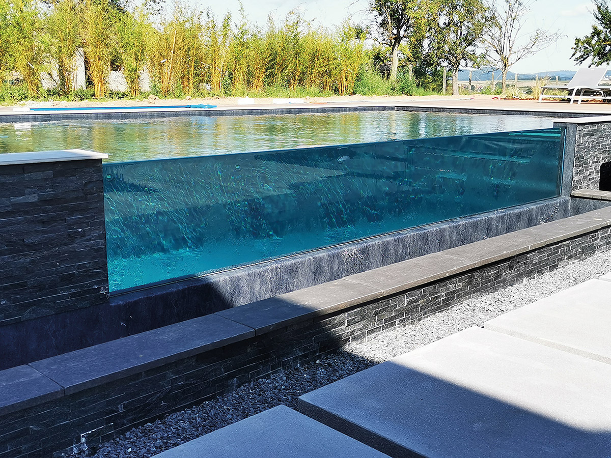 Notre rayon d’action couvre toute l’Alsace du nord et Strasbourg nord, soit un rayon d’environ 50 km autour de l’entreprise. Nous sommes spécialisés dans la construction de piscines traditionnelles en dur, sur mesure, ce qui représente environ 50 % de notre activité. Nous nous attachons à offrir une véritable expérience client grâce à une approche personnalisée qui tient compte des attentes et des envies de nos clients et qui prend aussi en considération l’environnement du projet, la configuration du terrain et le type de bassin (monobloc, en béton armé, etc.).