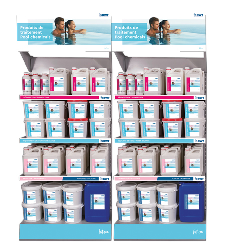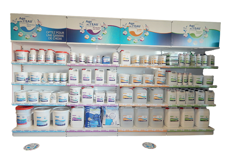 Objectif : guider le parcours d’achat du client. Pour ce faire, votre magasin doit être découpé en zones thématiques reprenant chaque étape de la vie d’une piscine (construction, entretien, rénovation) ou catégories de besoins (traitement, entretien, étanchéité, chauffage, couverture…) pour simplifier la circulation des clients. Chaque rayon doit être clairement identifié et la disposition des produits adaptée à la place disponible et au type de produit présenté.