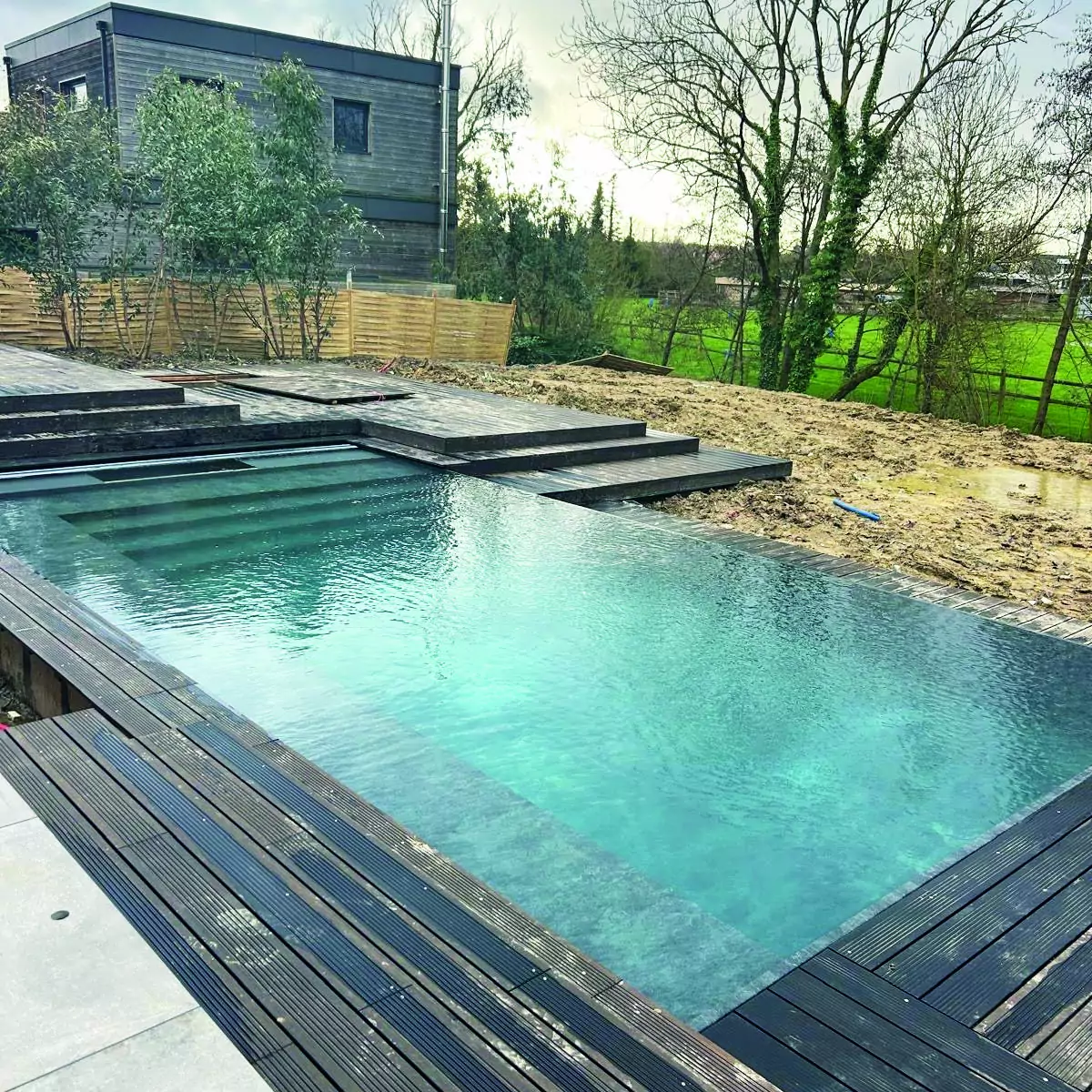La construction d’un bassin à débordement de 10 m x 5 m, situé à côté de Lille. C’était une création ex-nihilo qui a duré 5 mois. Nous avons creusé la piscine, ajouté le bac tampon, aménagé le sous-sol pour disposer le local technique et construit la terrasse. Je suis fier de ce projet, car nous avons parfaitement réussi à intégrer le bassin à l’environnement des lieux.