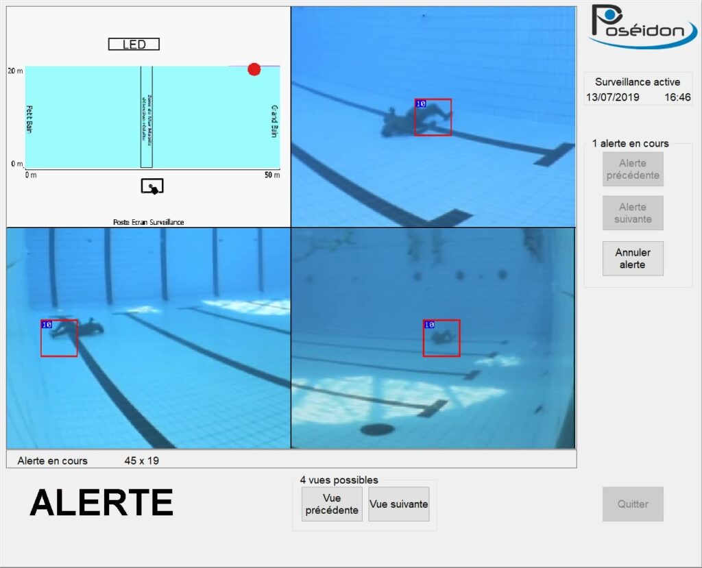Fruit d’une collaboration avec des chercheurs issus des meilleures universités et laboratoires français (CNRS, Université Paris-Descartes, Institut national de recherche en informatique et en automatique, etc.), Poséidon repose sur l’association d’équipements hardware propriétaires (caméras aériennes et/ou subaquatiques, unité centrale informatique, outils d’alerte) et de solutions logicielles expertes. En informant le personnel de surveillance dès le début d’une possible noyade, Poséidon permet de gagner de précieuses secondes, des secondes qui peuvent sauver des vies.