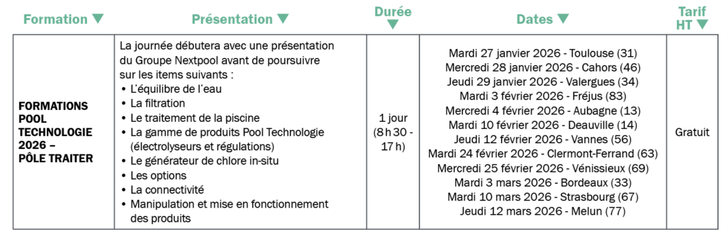 FORMATIONS POOL TECHNOLOGIE 2026 – PÔLE TRAITER (POOL TECHNOLOGIE & STÉRILOR)