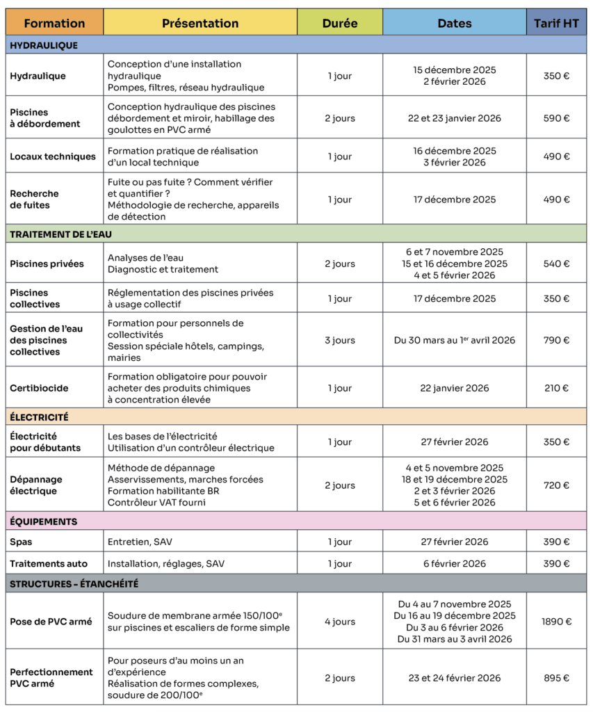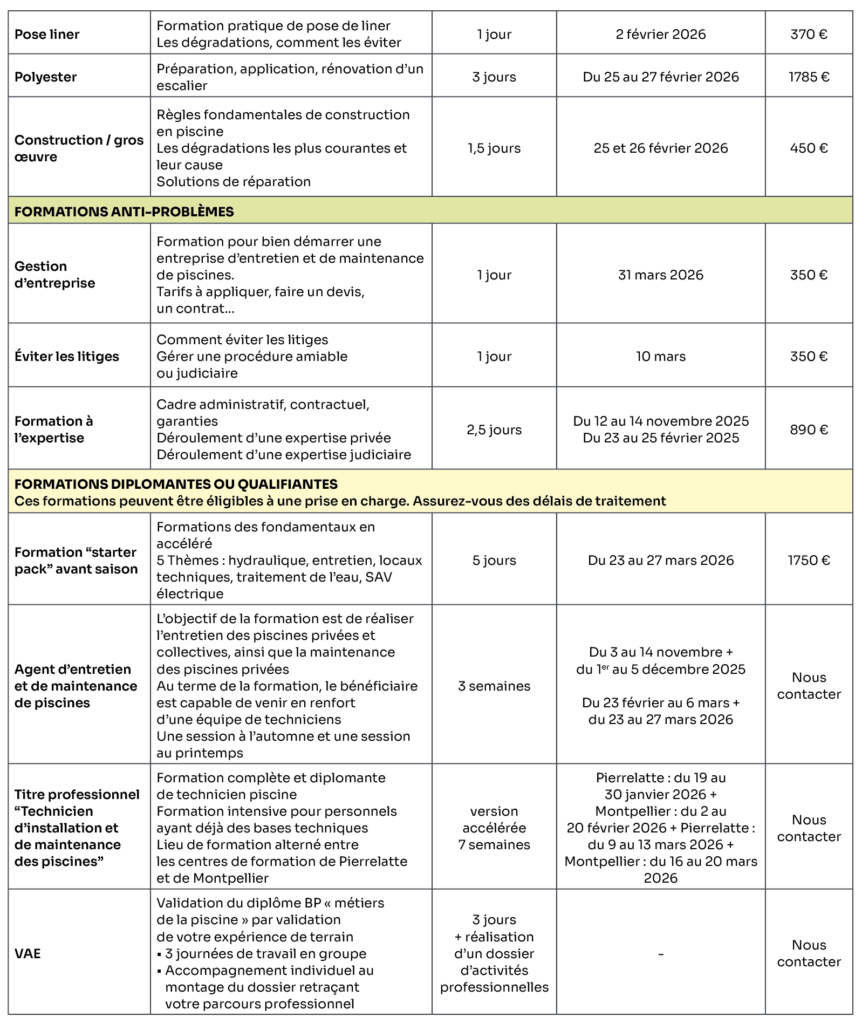 Christelle Marsot – 06 87 21 51 49 Sandrine – 06 95 14 11 77 formation.piscine@orange.fr