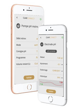 Clairconnect est une innovation domotique proposée par Clairazur. Le système intègre une application et deux boîtiers de contrôle qui permettent d’accéder aux commandes de son spa ou spa de nage Clairazur via un téléphone ou une tablette. Que l’on se trouve dans sa maison ou à l’extérieur, il est désormais possible de garder le contrôle de son équipement. La Clairconnect permet un contrôle à distance de la température du spa, du pH et du Chlore. Il est possible en un simple clic d’activer l’alimentation ON/OFF, de contrôler l’activation des jets et l’éclairage via l’application mobile installée au préalable sur le Smartphone.