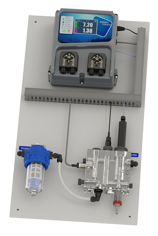 Les combinés pH et ORP ou chlore sont proposés en version prémontée et précâblée sur panneau avec chambre de mesure. Positionnement des sondes, câblage, préréglage… tout est préinstallé à l’usine pour limiter les manipulations et simplifier l’installation de l’appareil dans le local technique des clients.