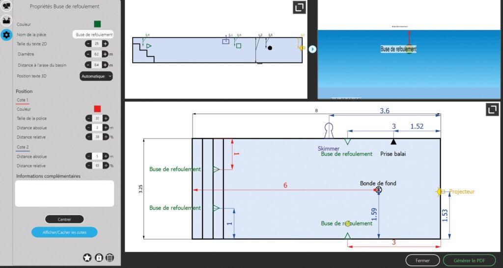 2. Technique : générer facilement les plans et intégrer les pièces à sceller pour les piscines traditionnelles.